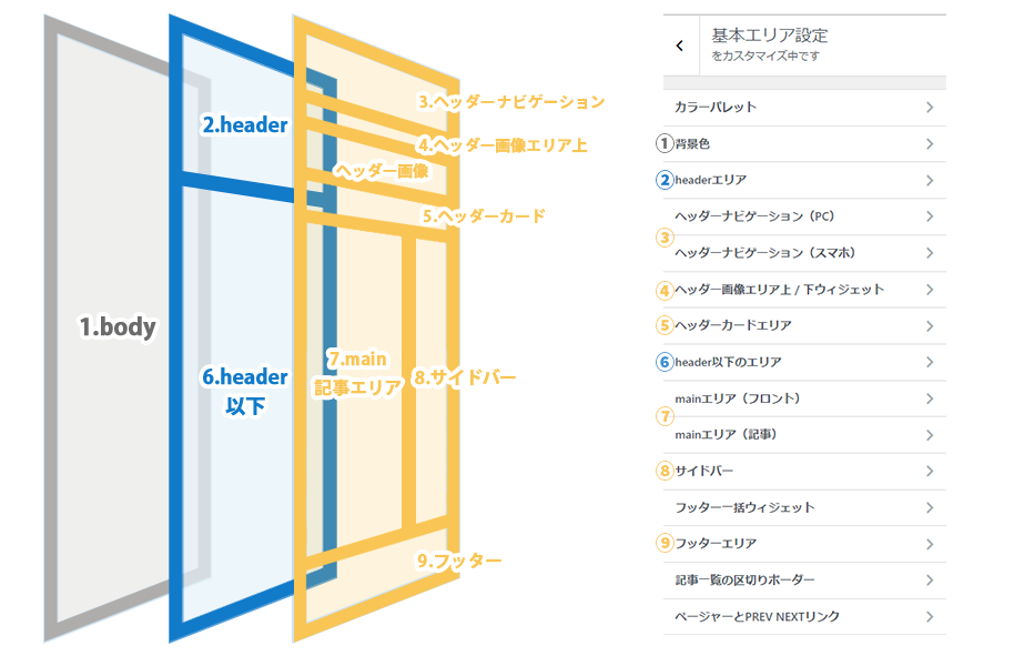 サイトの背景色は上図ようなレイヤー(層)になっています。