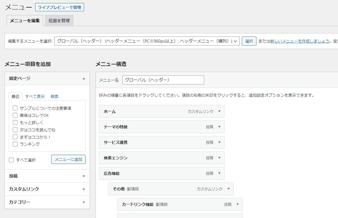 https://action-sample.com/ 上のサイトのようなカテゴリーで分けた記事一覧の ...